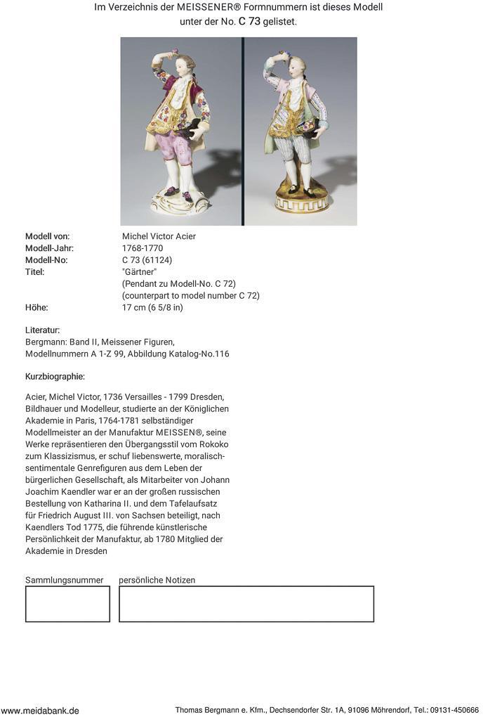 Acier, sculptor and modeller, studied at the Academy in Paris. 1764-1781 independent model master in Meissen. Meissen manufactory price: 3690, - Euro * Partner auction Bergmann.