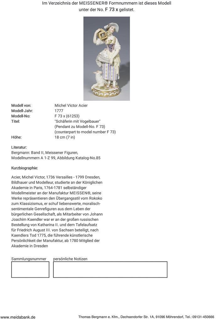 Acier, sculptor and modeller, studied at the Academy in Paris. 1764-1781 independent model master in Meissen. Meissen manufactory price: 4690, - Euro * Partner auction Bergmann.