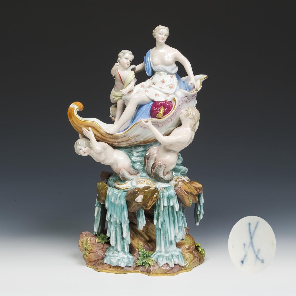 Venus group on waterfall rock postament | see supplement. Meissen.