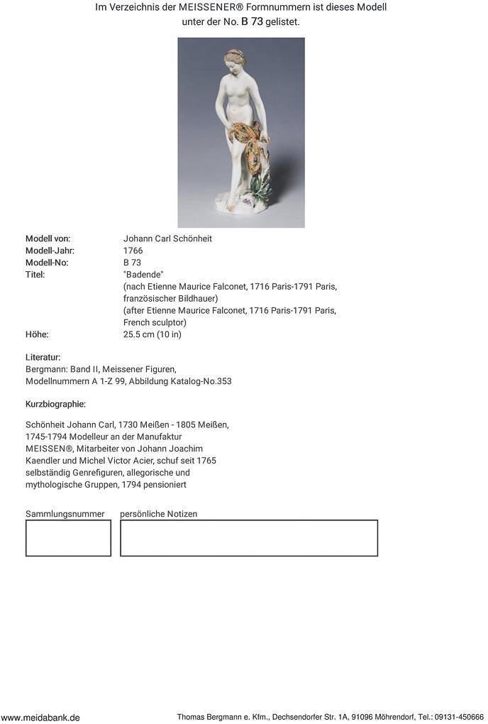 Beauty, 1745-1794 modeller at the manufactory, collaborator of Johann Joachim Kaendler and Michel Victor Acier, designs his own models since 1765 * Partner auction Bergmann.