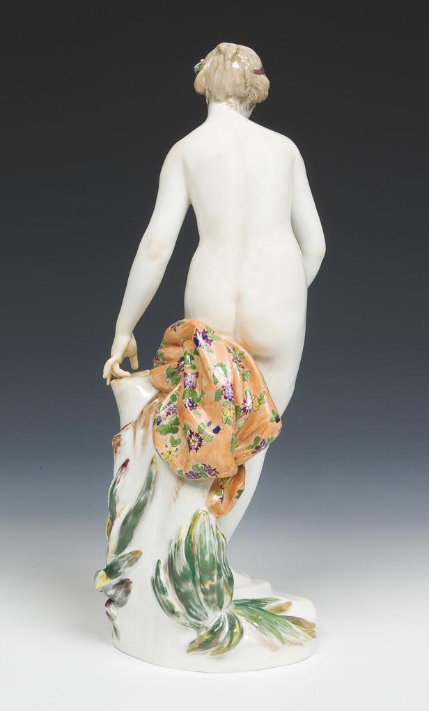 Model by Johann Carl Schönheit 1766 (after Etienne Maurice Falconet, 1716-1791, French sculptor). Painted in colors. Incised mark, press mark, painter's mark, sword mark. One toe bumped, one hand, one foot restored, one finger bumped, loose present.