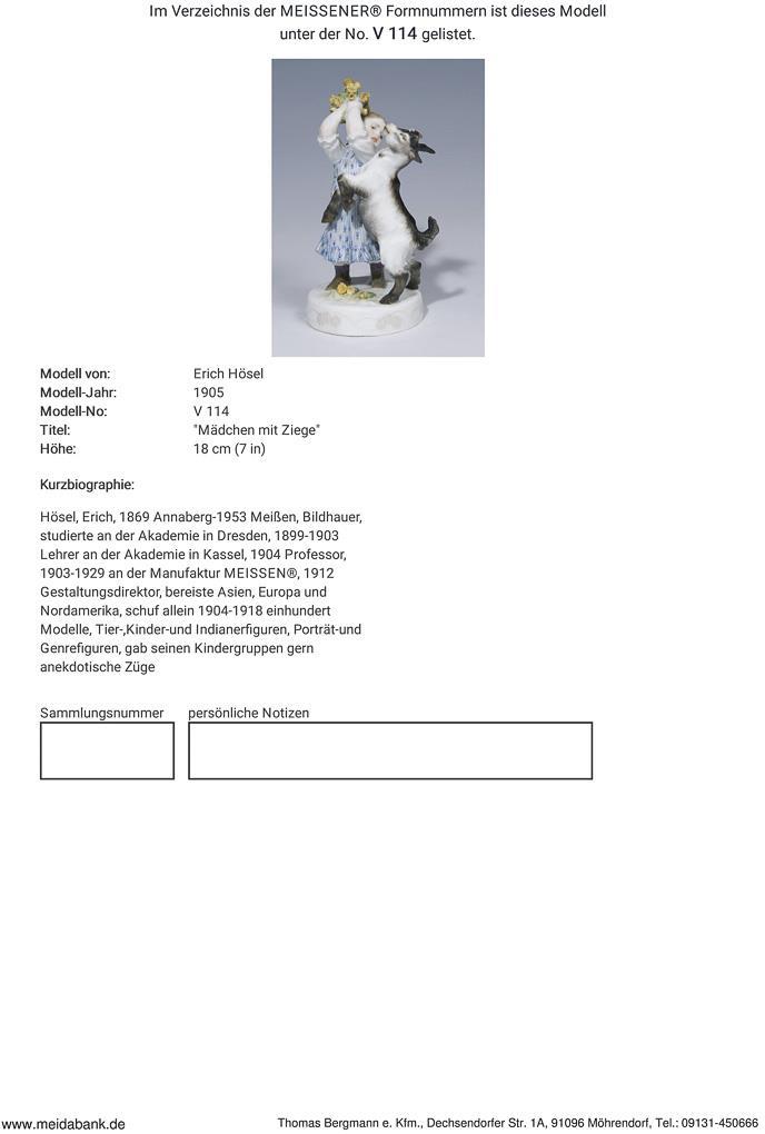 Hösel, sculptor, studied at the Academy in Dresden. 1899-1903 teacher at the Academy in Kassel, 1904 professor. 1903-1929 at the Meissen manufactory. 1912 design director * Partner auction Bergmann.