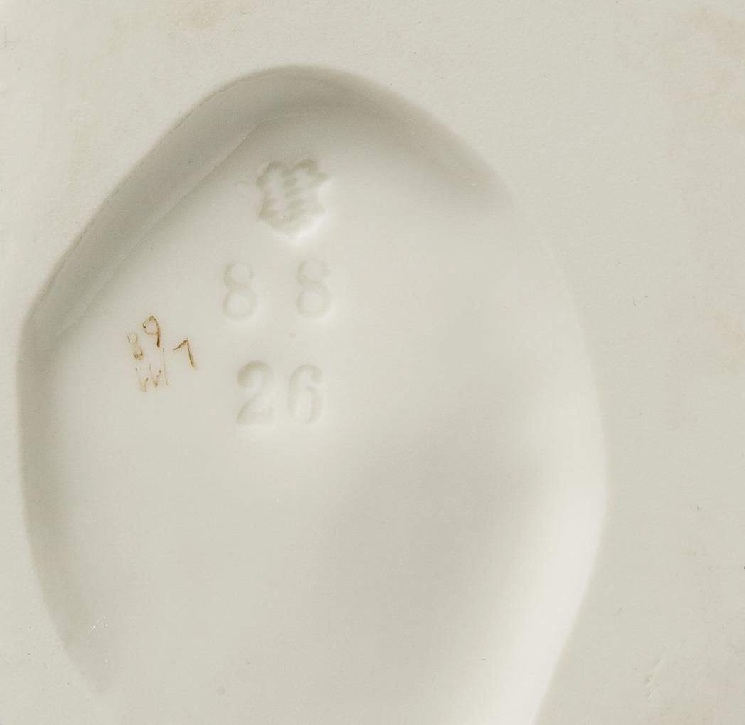 Model by Franz Anton Bustelli 1755-1760. colorfully painted, gold painted. Partially unglazed base, press marks, painter's mark.