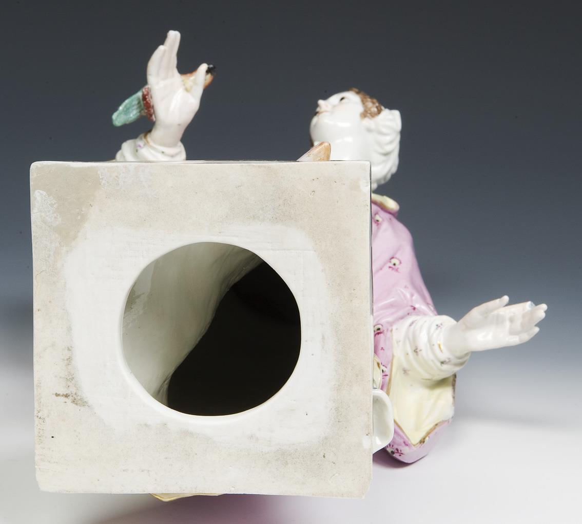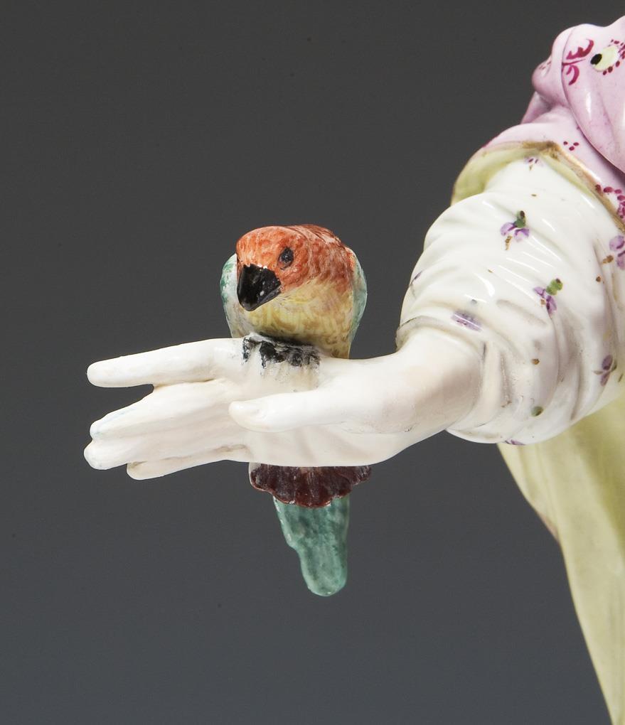 KPM Berlin model by Friedrich Elias Meyer 1768. colored painted, gold staffiert. Unglazed base, without marks. Base rim on two sides, hands, parrot restored, a base corner, a finger bumped.