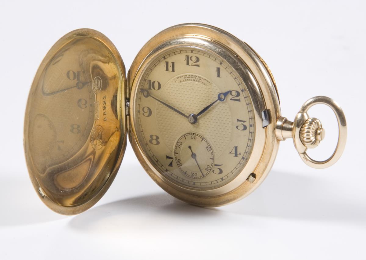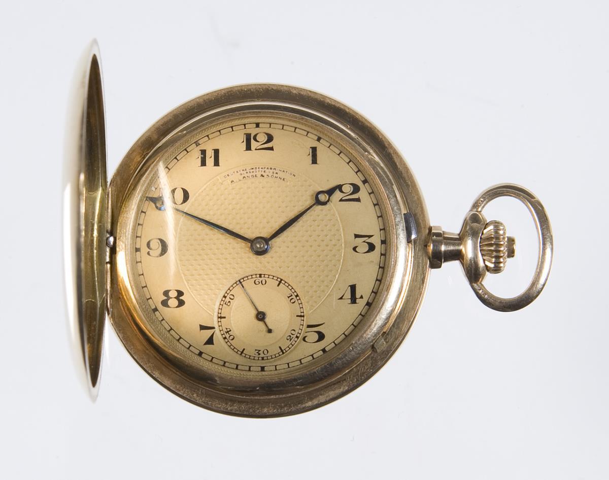Gold Savonette in original case. A. Lange & Söhne, German watch manufacture, Glashütte.