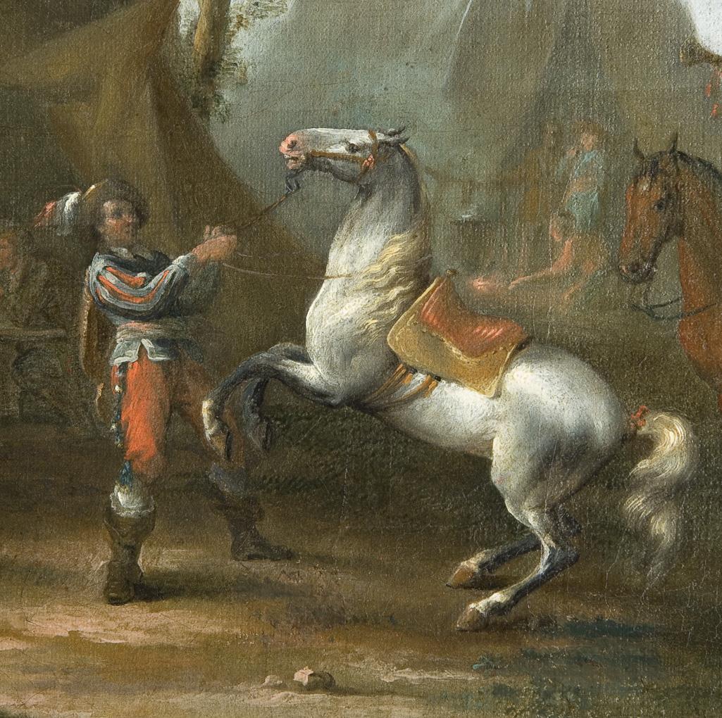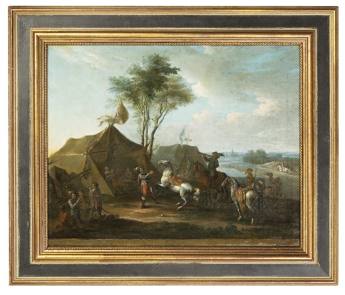 Pieter van Bloemen, landscape and genre painter. Brother of Jan Frans, pupil of Simon Douw. 1673 master of the Guild of St. Luke, 1685-1693 active in Rome. Because of the pennants in his paintings he got the nickname Stendardo (Standard). Operated a large workshop in Antwerp from 1694, dean of the Guild of St. Luke in 1699. Repeatedly painted equestrian scenes influenced mainly by Philip Wouwerman, with whose works his are also often confused. Works in various European museums * partner auction Bergmann.