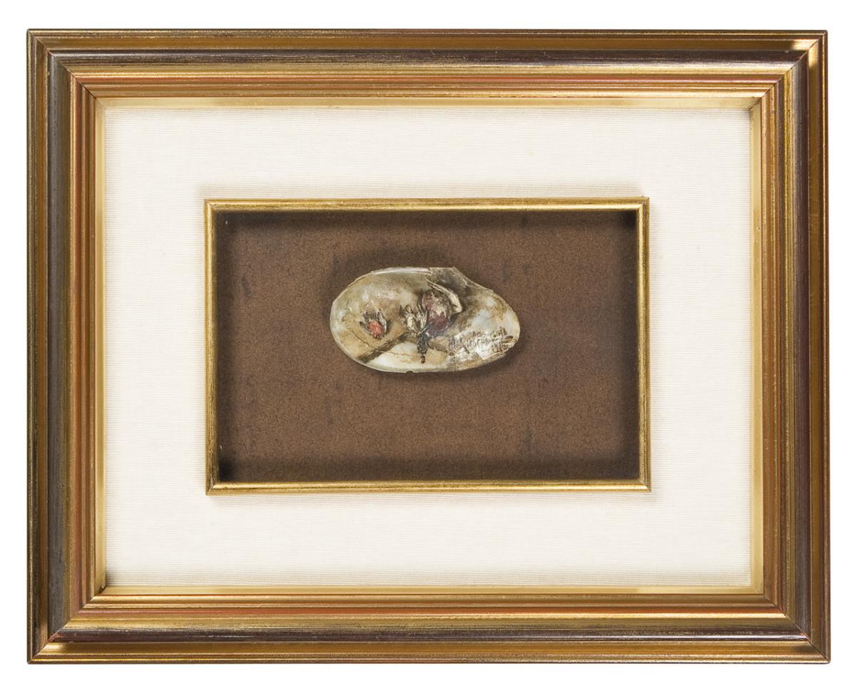 5 x 9.5 cm. Framed & behind glass : 32 x 40 cm.