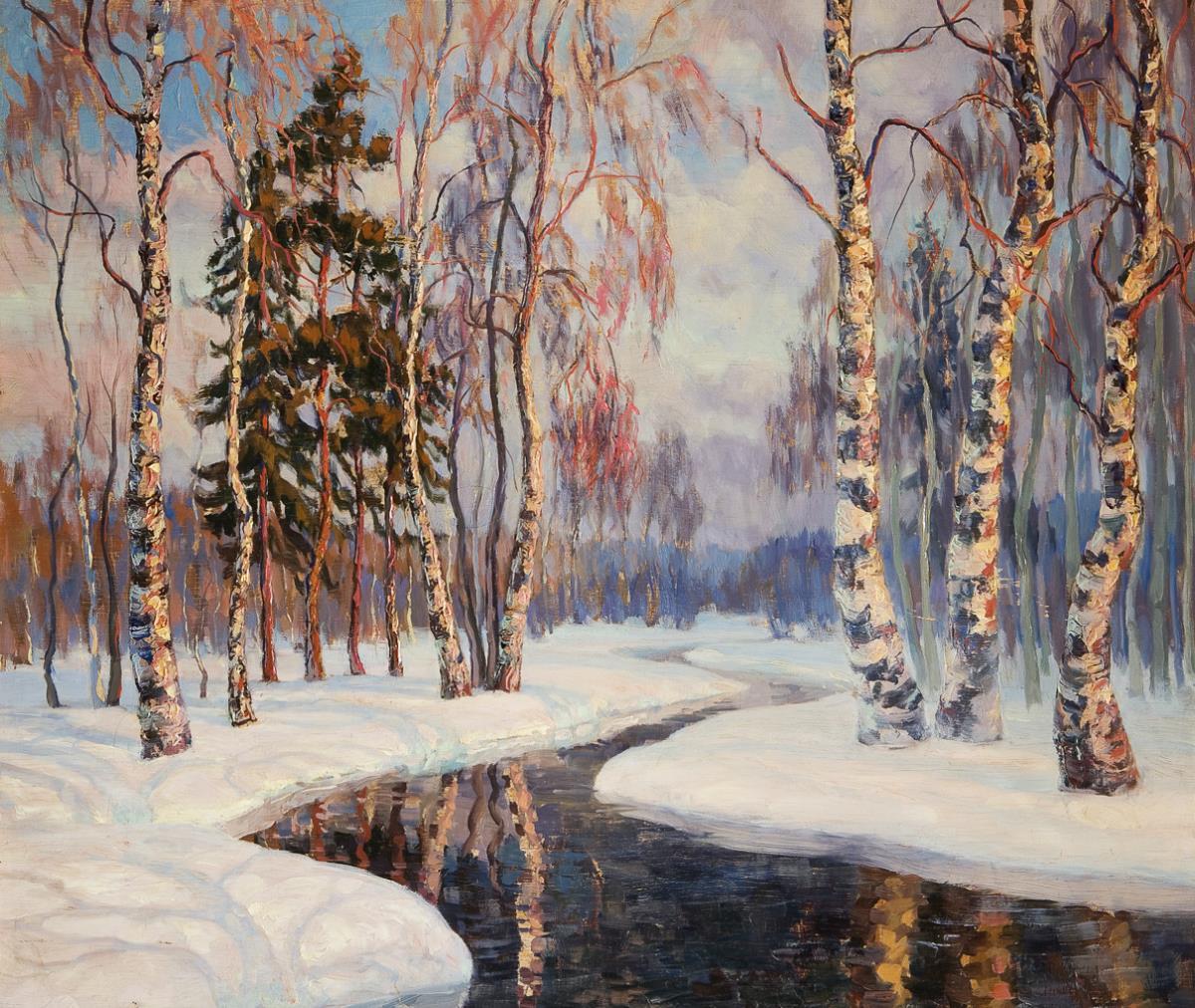 The motif is of austere and melancholic beauty, the representation of light and atmosphere finely interpreted. Profiled frame with gold moldings and linen cover.