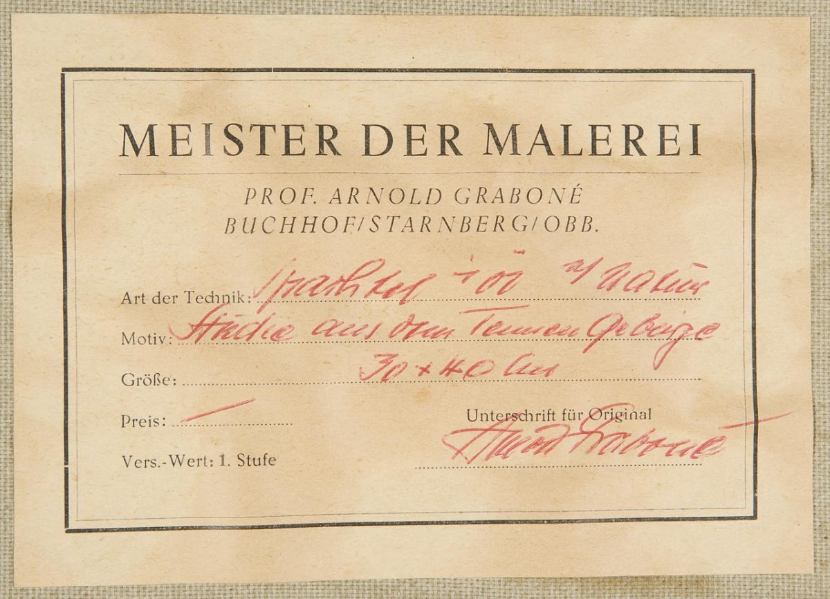 Arnold-Graboné, landscape painter, studied at the academies in Stuttgart, Munich, Berlin, Vienna and Paris. Master student of Max Liebermann and Heinrich von Zügel. Since 1930 professor and rector at the Academy in Zurich * Partner auction Bergmann.