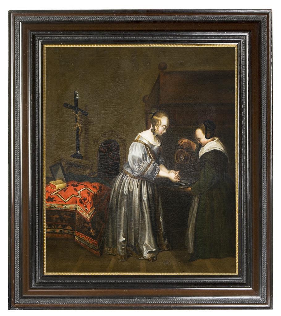 Borch, portrait, genre and landscape painter. 1633 pupil of Pieter de Molyn in Haarlem, 1635 master. Alternately active in various European cities, since 1654 resident in Deventer. Works in numerous international museums * Partner auction Bergmann.