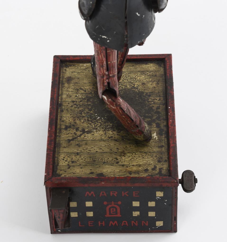On the racist background of this toy see: https://www.deutschlandfunkkultur.de/ausstellung-ueber-rassistisches-spielzeug-ein-tanzender-100.html https://museenblog-nuernberg.de/2020/11/03/bericht-zu-ethik-im-museum/