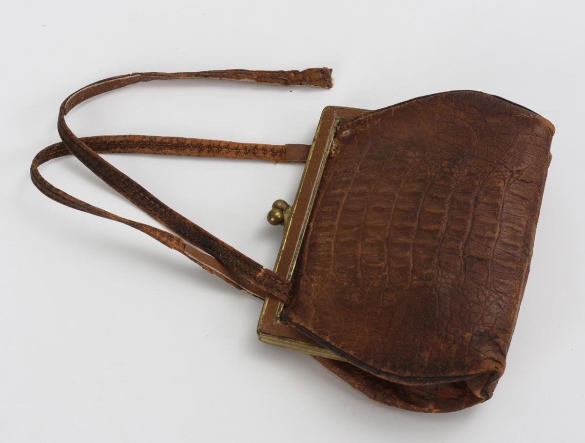 Fan and brown leather bag. Head not x-rayed: no defects visible. Body partially painted over.
