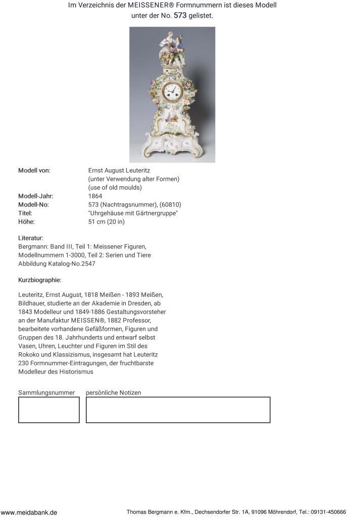 Bildhauer, Modelleur, 1849-1886 Gestaltungsvorsteher an der Manufaktur Meissen. * Partnerauktion Bergmann.
