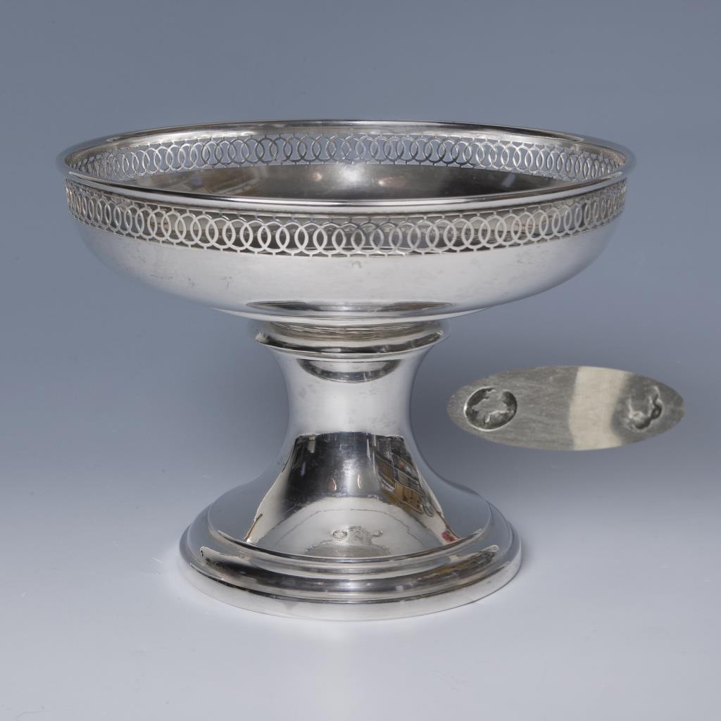 Runde profilierte Form mit durchbrochen gearbeitetem Mündungsrand.