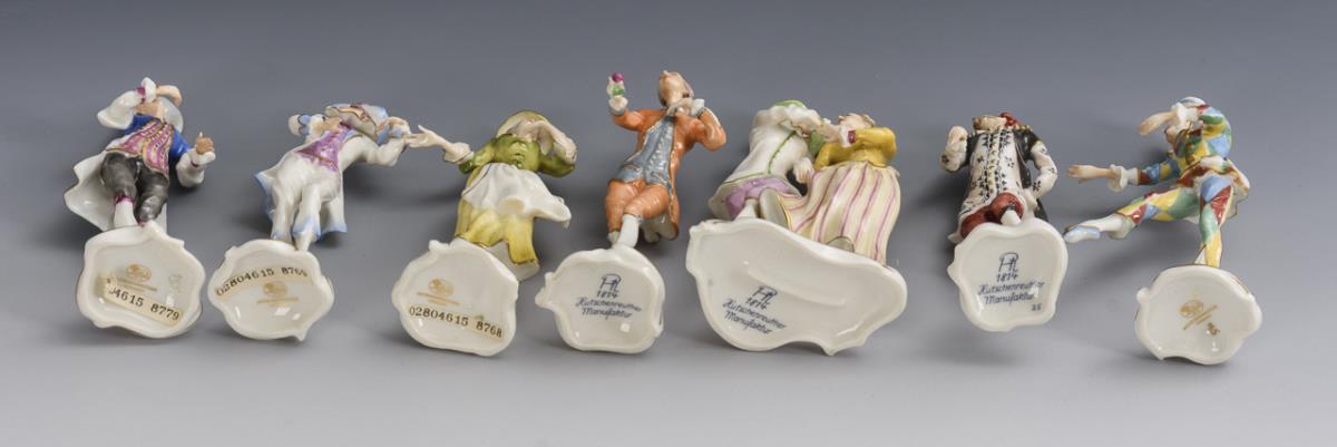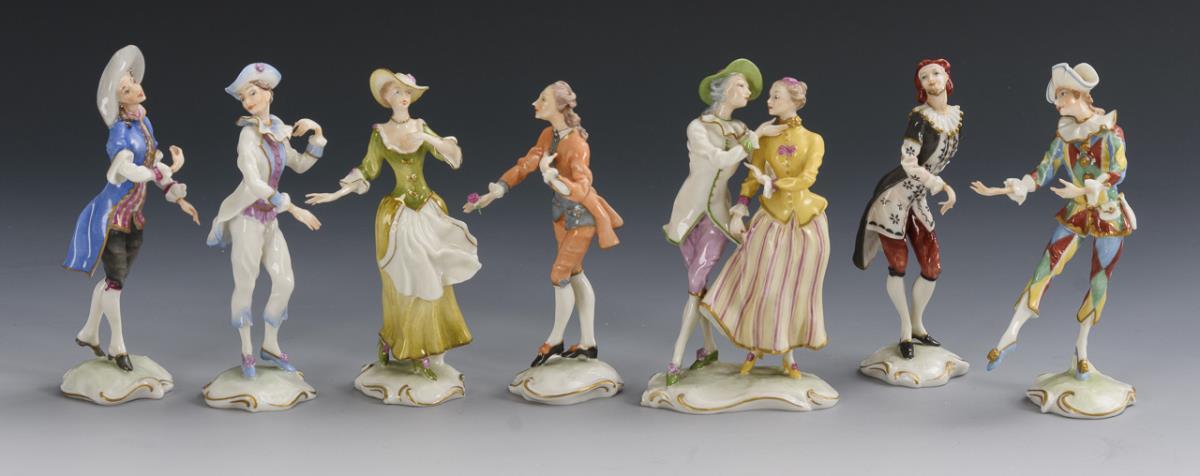 7 delicate figures of Commedia dell'arte, including Arlecchino, Pantalone, Lucinda and Octavio.