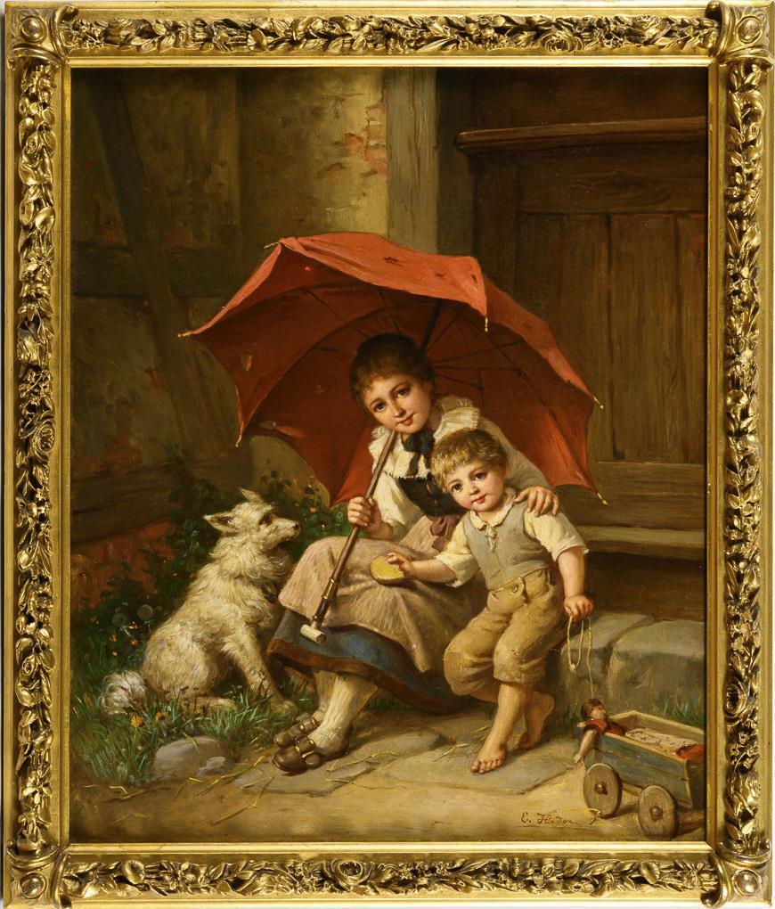 Genre scene with children and dog