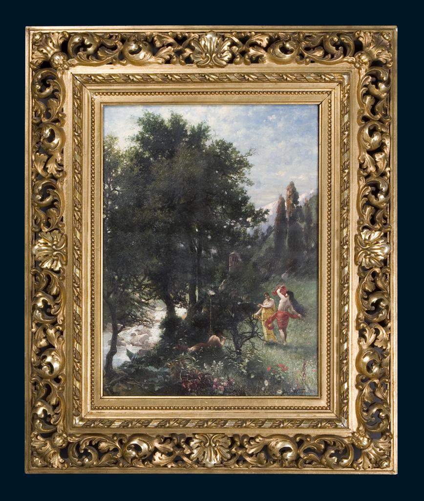 Tanzende Nymphen in romantischer Landschaft