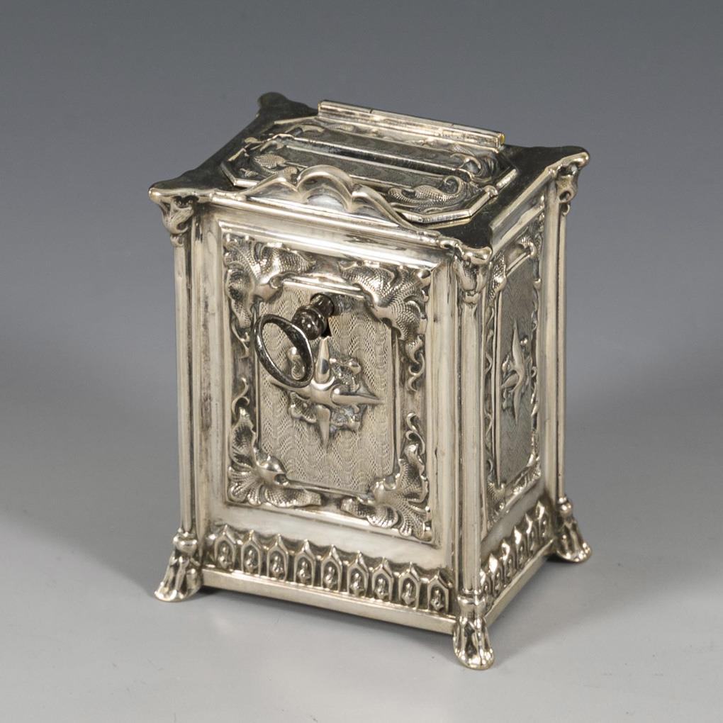 Relief box in tabernacle form. Engraving on the bottom: "Jacob Wiering his Patchen!". 1 key.