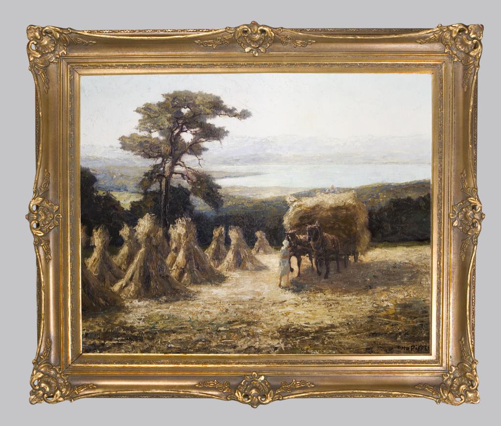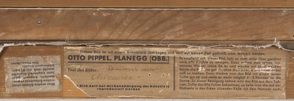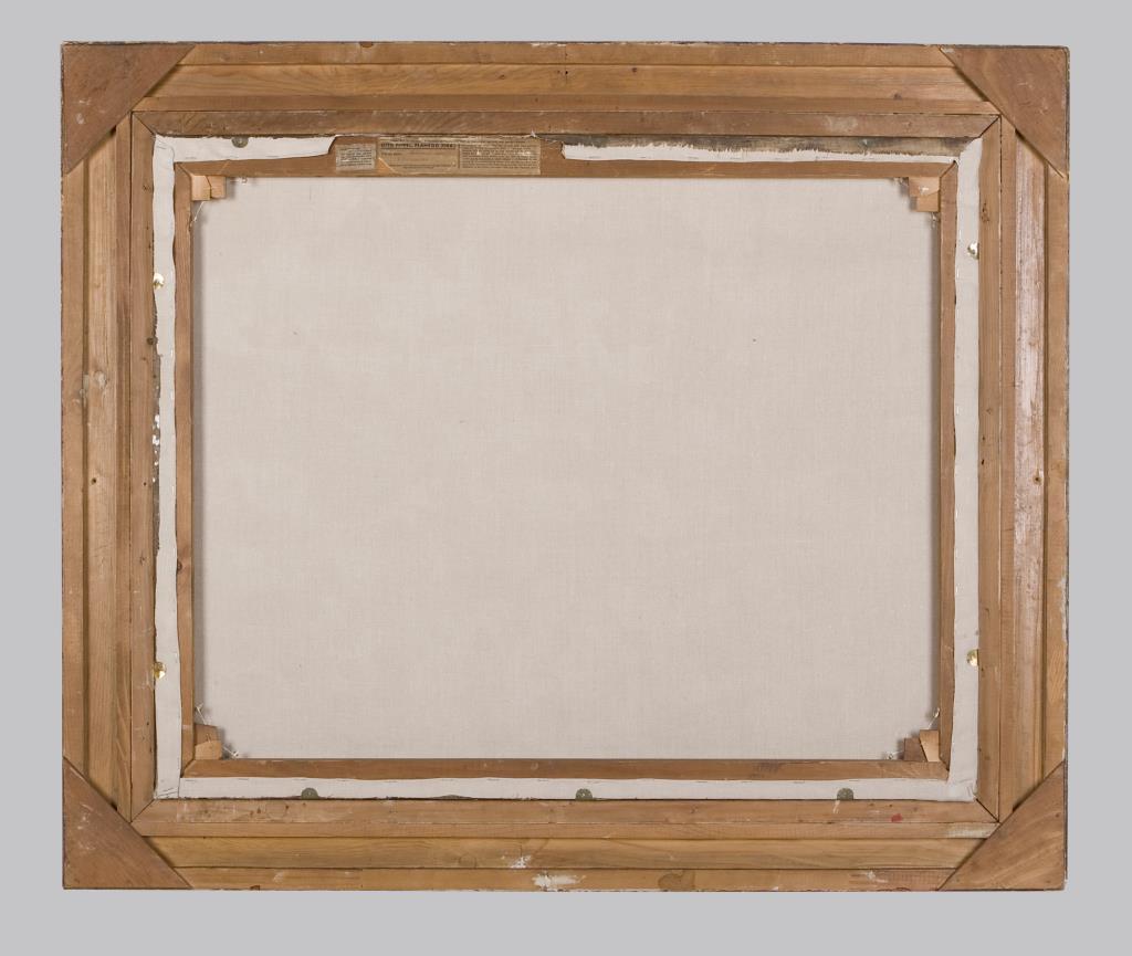 Rückseitig Klebezettel mit dem Titel. Originaler vergoldeter Stuckrahmen. Doubliert.