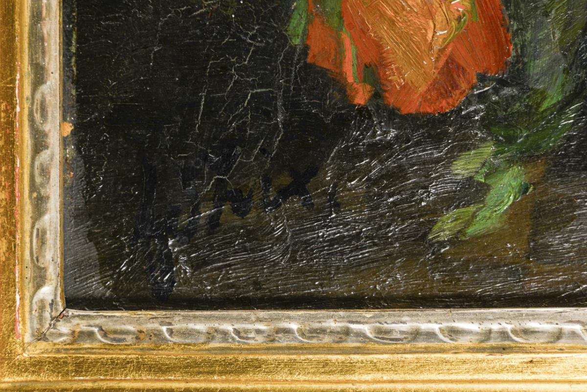 Oil/painted cardboard. Signed lower left, verso inscribed / titled.