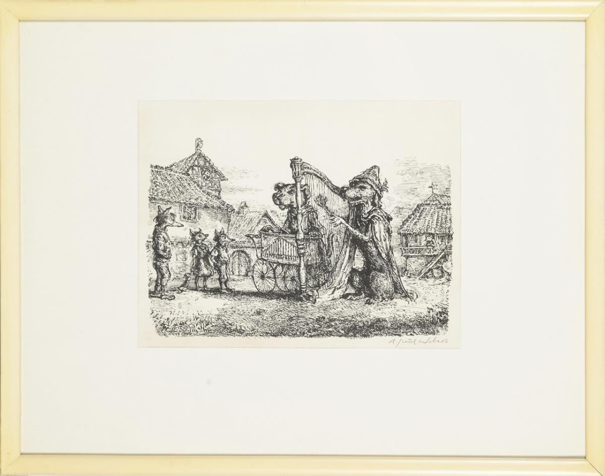 German lithographer, draughtsman and painter, he received the Grand Federal Cross of Merit in 1971. In 1993, the German Federal Post Office issued a 100 pfennig commemorative stamp with the motif "Audience" in his honor as part of the "German Painting of the 20th Century" series. "I follow an urge and see it as my task to visualize and create what moves, depresses, worries or amuses me. For the most part, I can stick to the facts like a chronicler. But that is the gift: to think in pictures." (Quote: APW, 1967, seen on https://www.weber-museum.de/html).