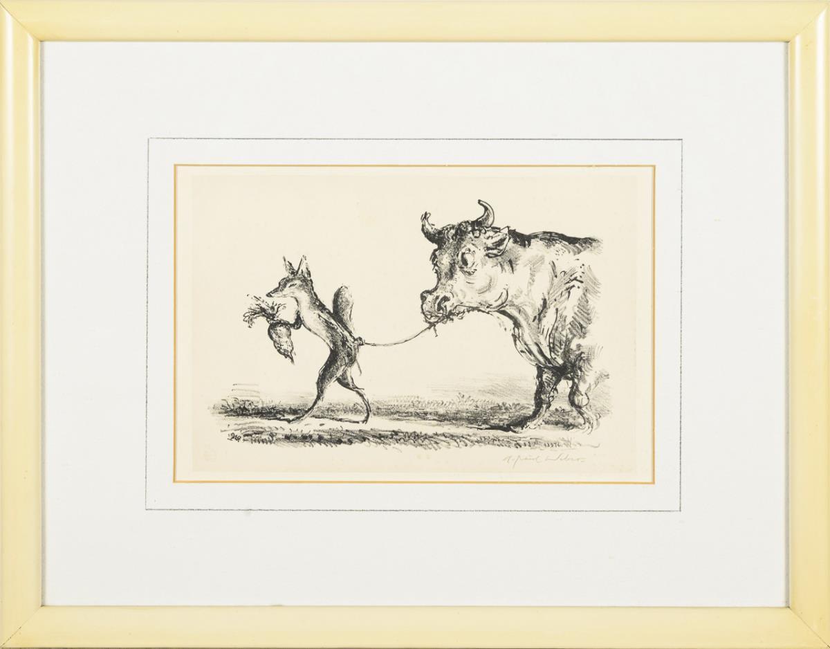 German lithographer, draughtsman and painter, he was awarded the Grand Cross of the Order of Merit of the Federal Republic of Germany in 1971. In 1993, the German Federal Post Office issued a 100 pfennig commemorative stamp with the motif "Audience" in his honor as part of the "German Painting of the 20th Century" series. "I follow an urge and see it as my task to visualize and create what moves, depresses, worries or amuses me. For the most part, I can stick to the facts like a chronicler. But that is the gift: to think in pictures." (Quote: APW, 1967, seen on https://www.weber-museum.de/html).