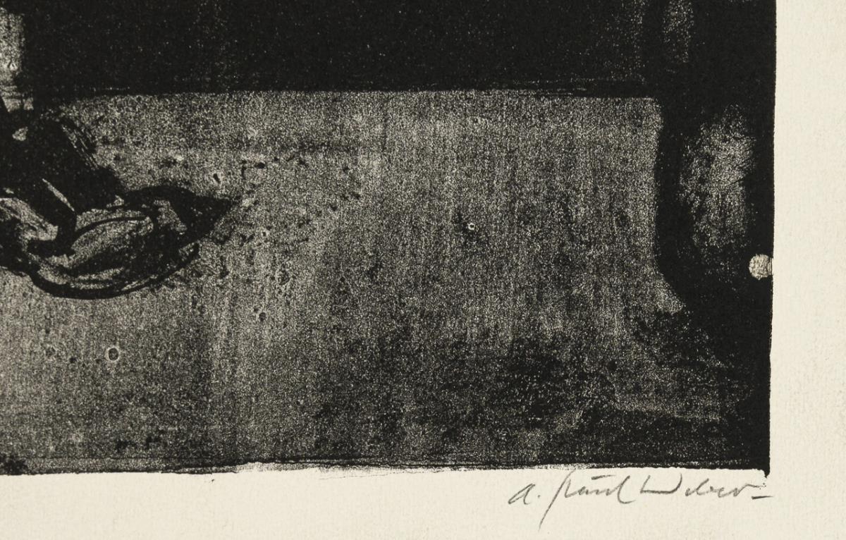 German lithographer, draughtsman and painter, he received the Grand Cross of the Order of Merit of the Federal Republic of Germany in 1971. In 1993, the German Federal Post Office issued a 100 pfennig commemorative stamp with the motif "Audience" in his honor as part of the series "German Painting of the 20th Century". "I follow an urge and see it as my task to visualize and create what moves, depresses, worries or amuses me. For the most part, I can stick to the facts like a chronicler. But that is the gift: to think in pictures." (Quote: APW, 1967, seen on https://www.weber-museum.de/html).