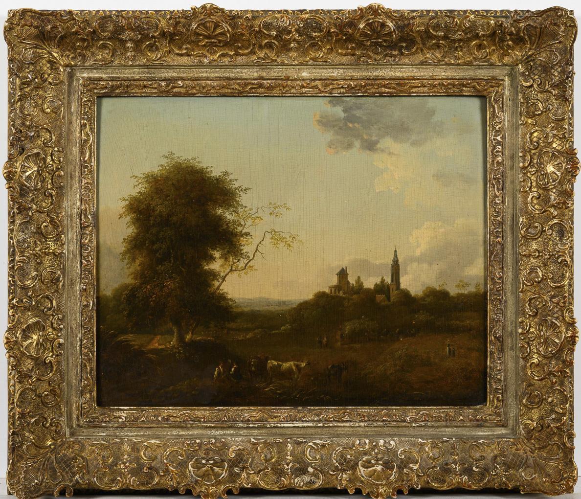 Unclearly signed: Landscape with church and staffage