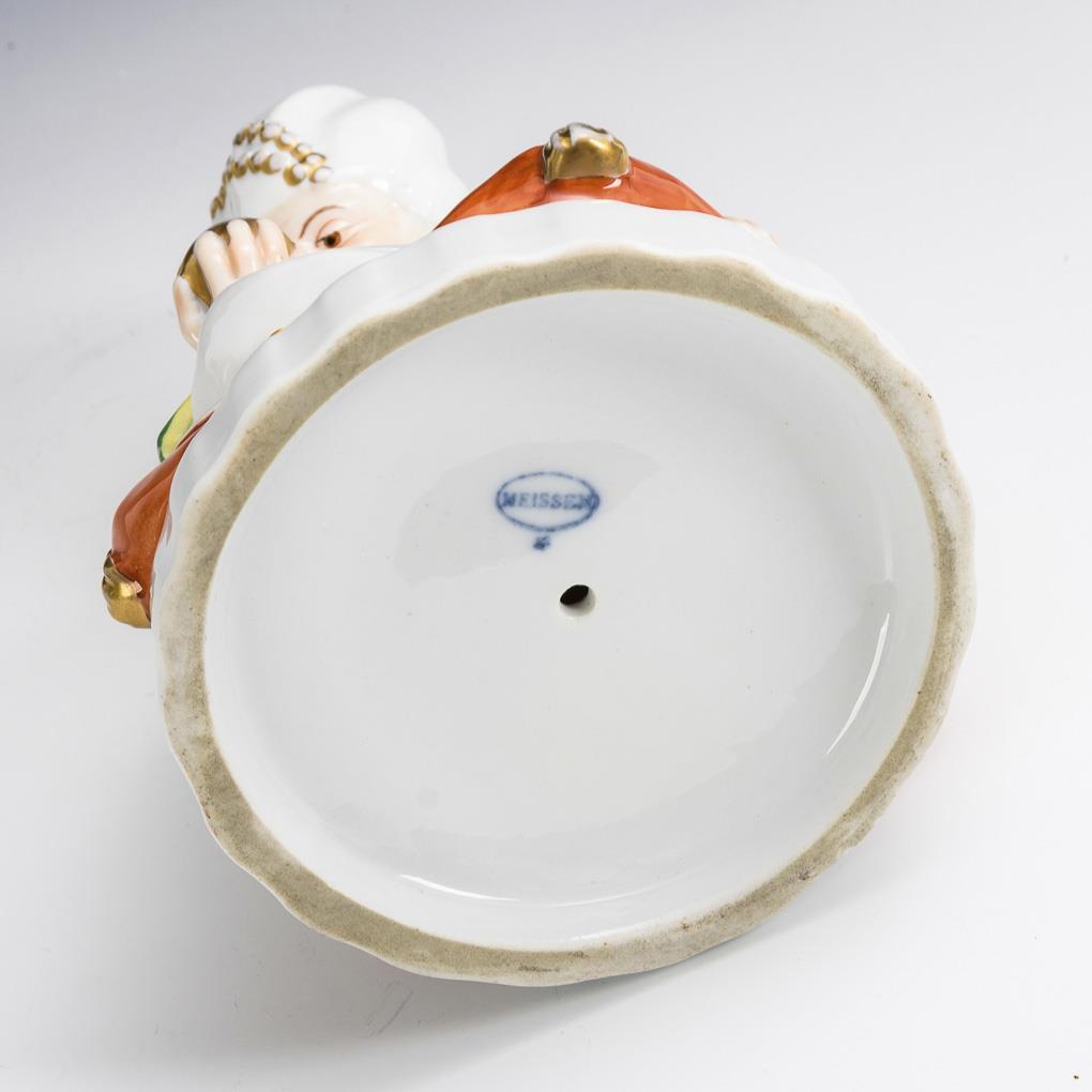 Polychrome painted, gold decorated. H 18,5 cm.