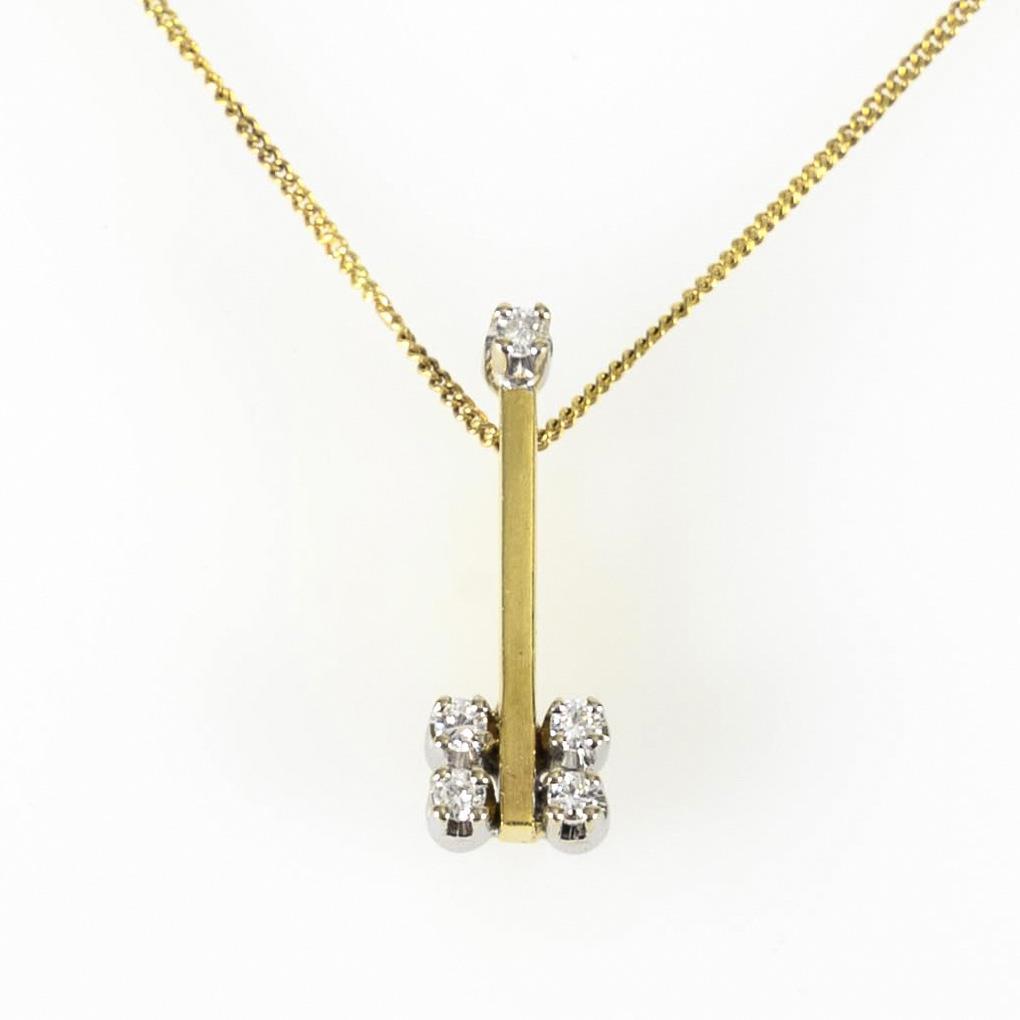 Yellow gold / white gold 585 stamped. Diamonds total approx. 0.12 ct. Pendant 2 x 0.6 cm. Chain L 51 cm. 3,2 g.