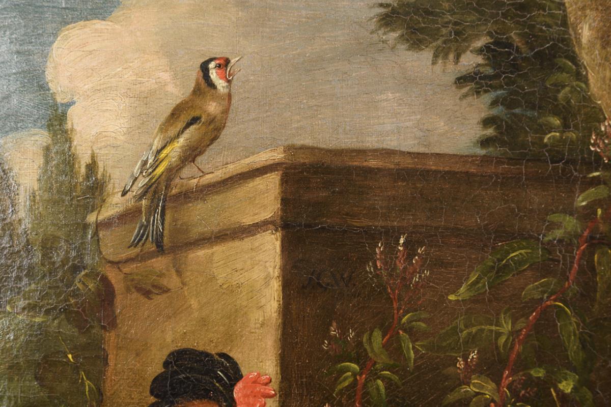 Oil/canvas. Signed in the upper right corner of the stone.
