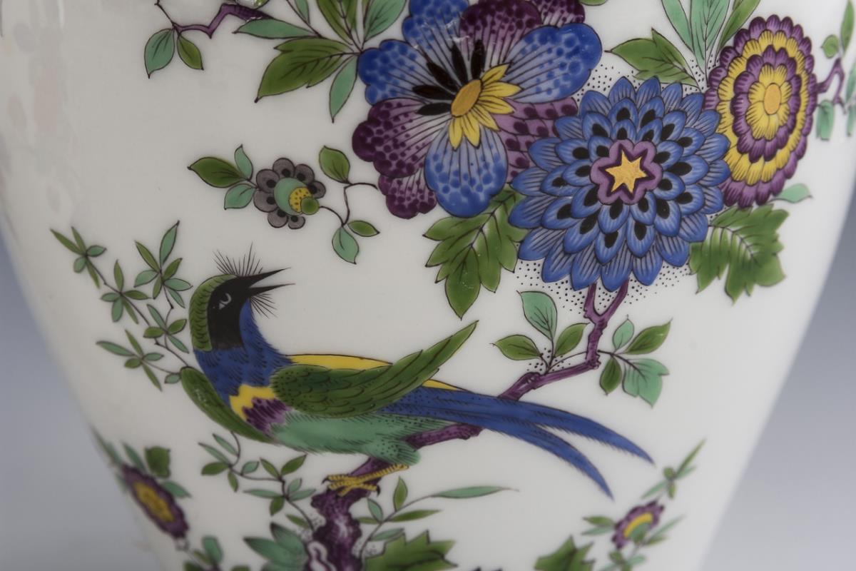 Baluster vase with knob lid. 1x with Indian floral painting after the castle vase and 1x with Indian rock, flower and bird painting.