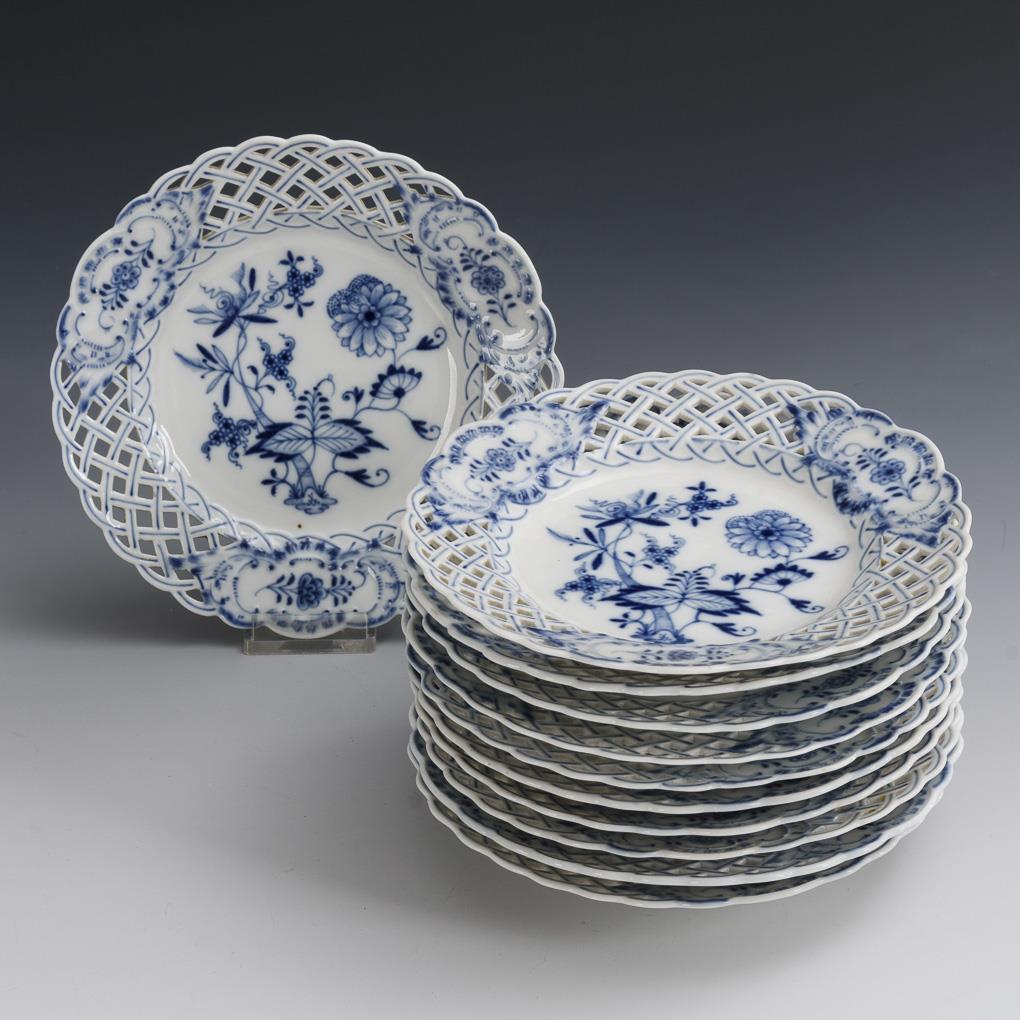 11 onion pattern breakthrough plates. Meissen.