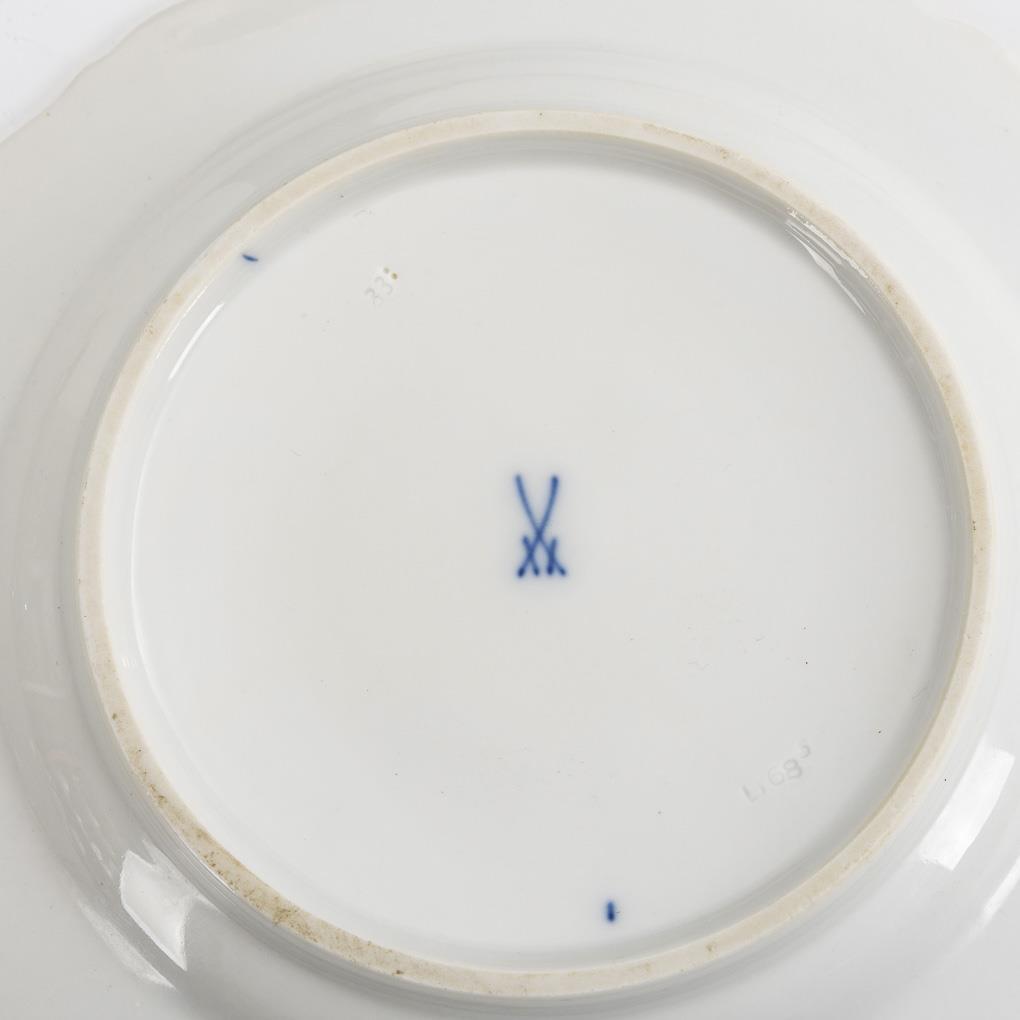 2 round plates and 2 cake plates with blue painting. Meissen.