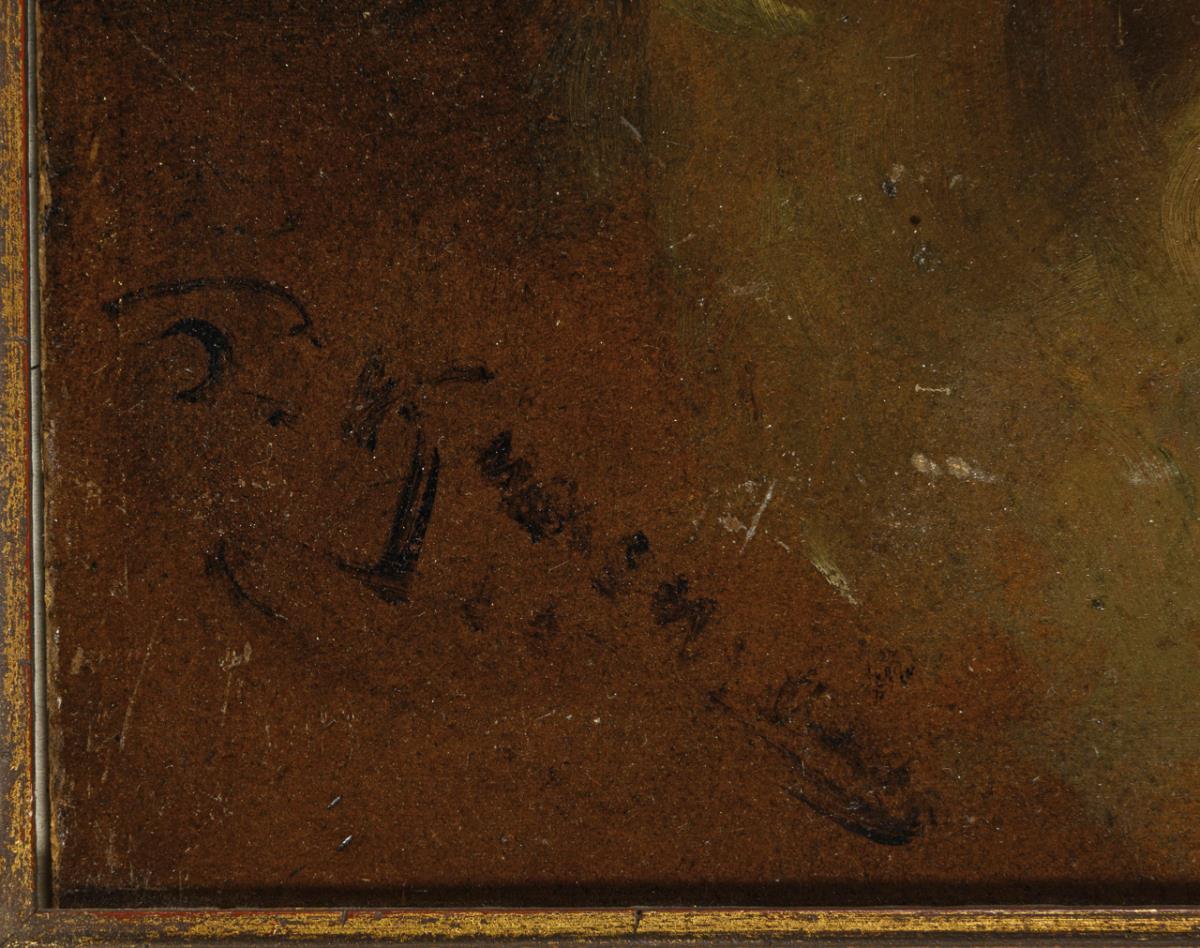 Oil/painted cardboard. Indistinctly signed lower left. Early 20th century