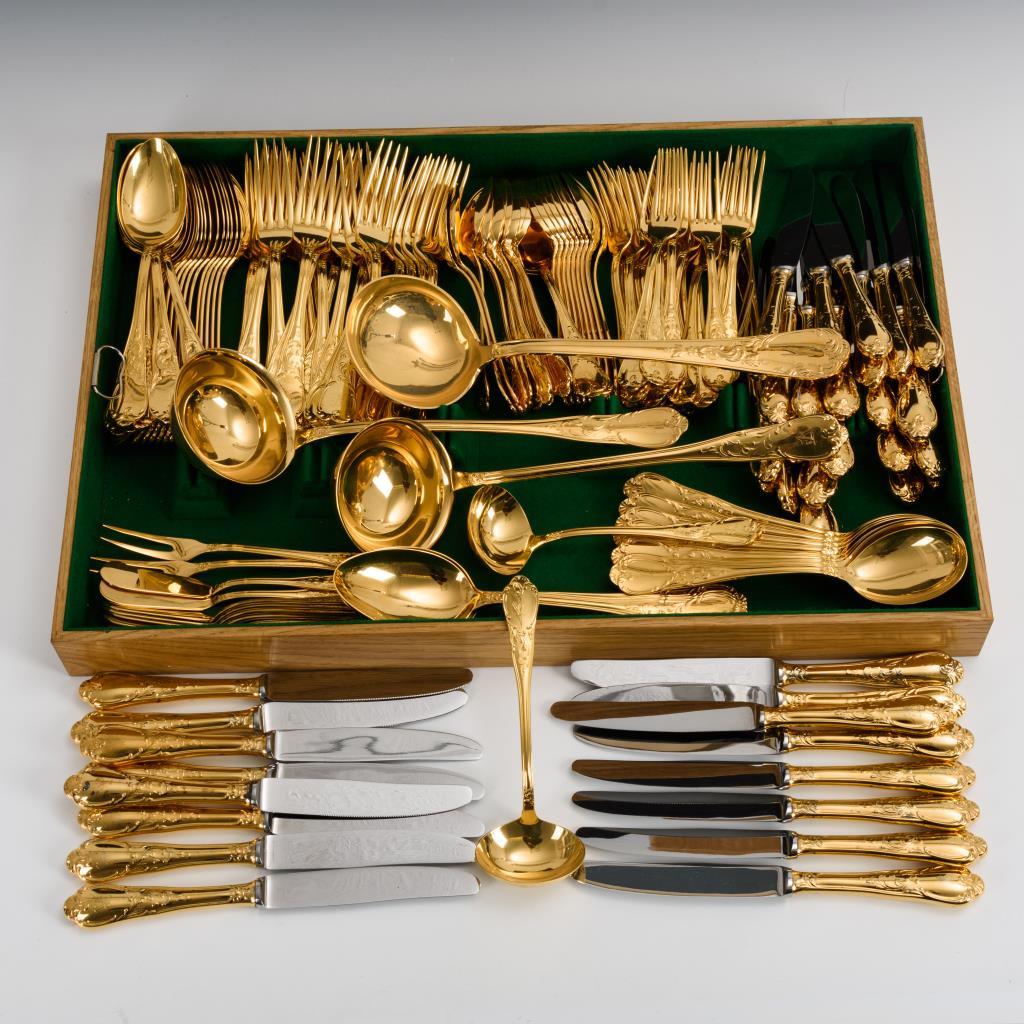 Umfangreiches vergoldetes Tafelbesteck für 20 Personen