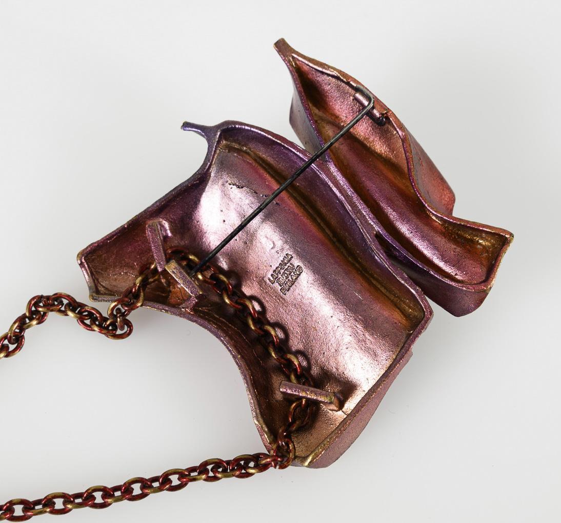 Large, heavily textured pendant with dark purple finish (brocaded on reverse) on continuous adjustable anchor chain.