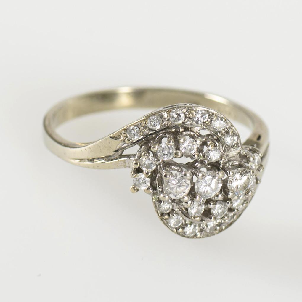 White gold 585 stamped. Ring size 59. 3.4 g.