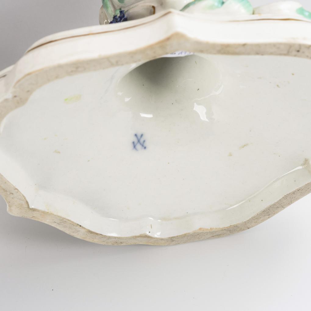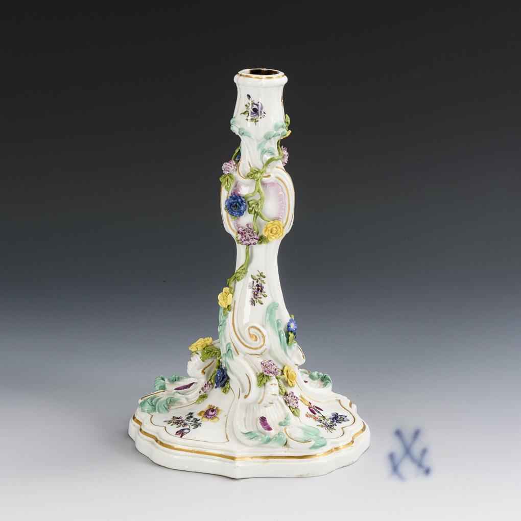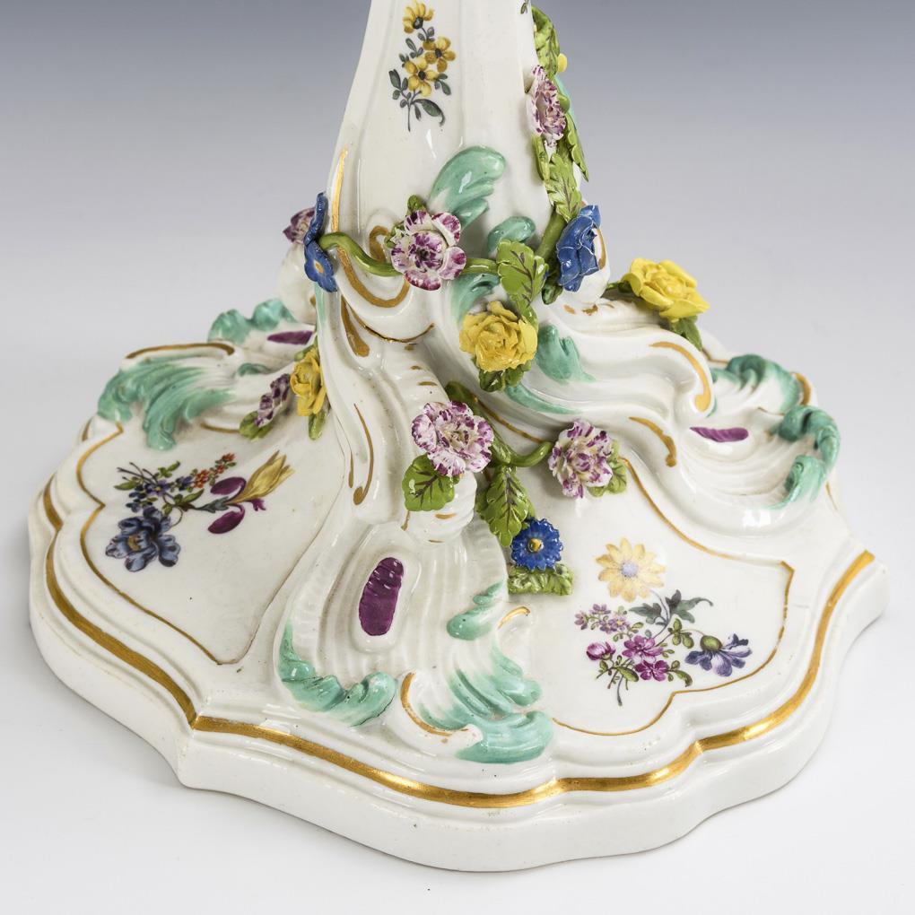 Rocaille shaft entwined with flowers and multi-pass foot with floral painting. Flowers and leaves restored.