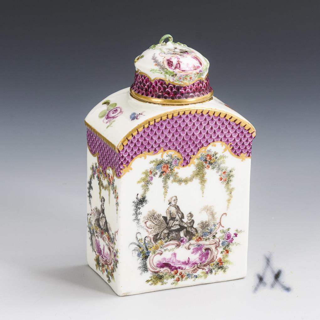 Baroque tea caddy with Watteau painting. Meissen.
