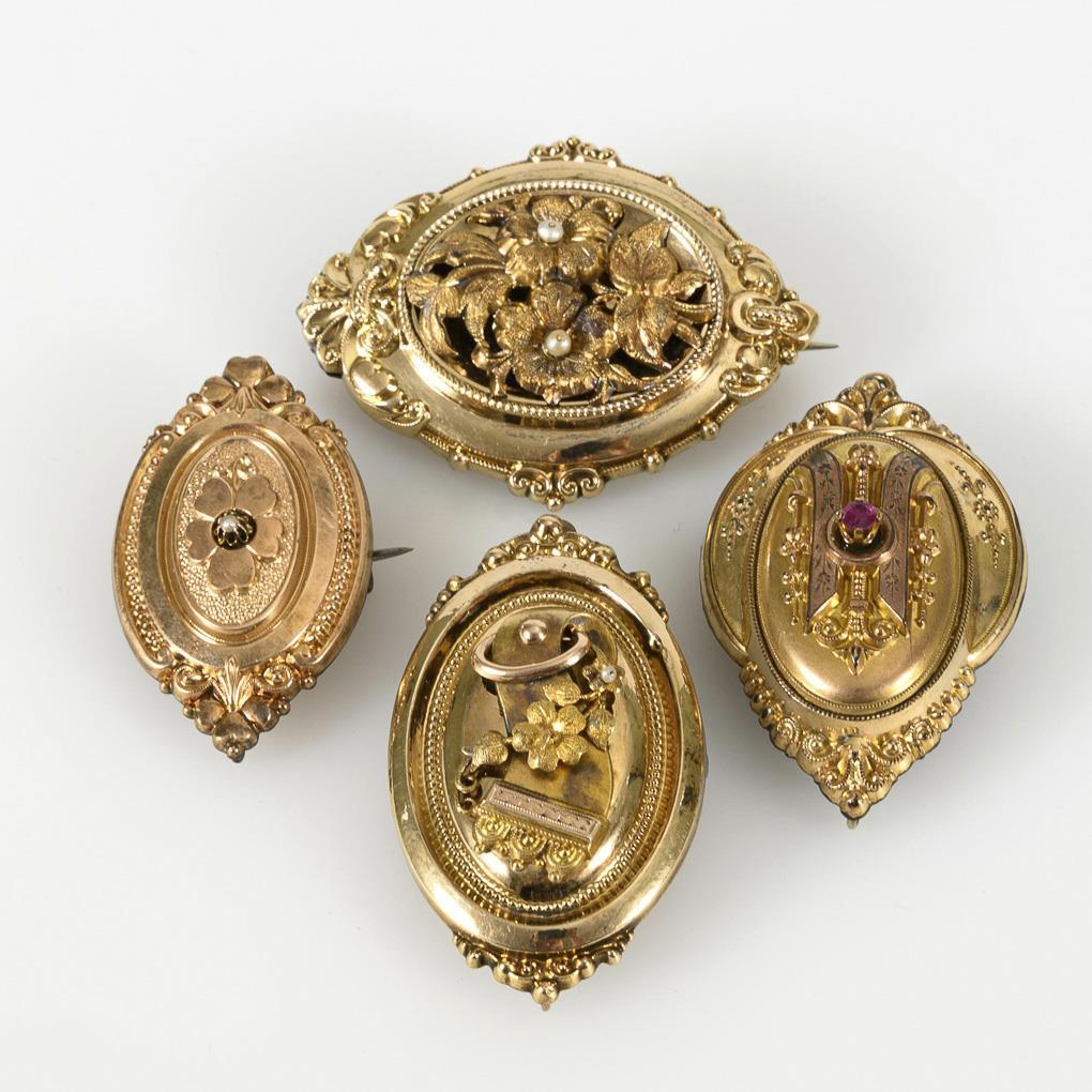 2 medallion brooches and 2 brooches late 19th century.