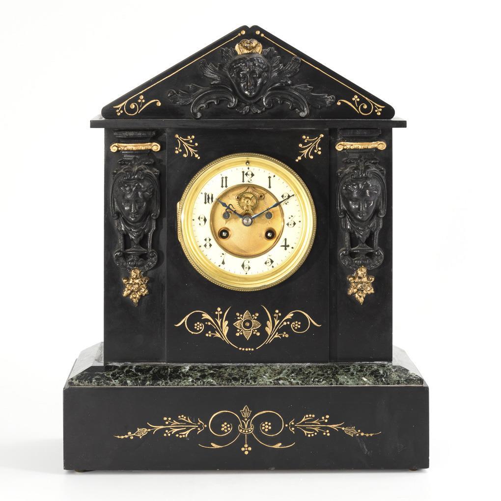 Black and green marble, partially bronzed. Approx. 38.5 x 31 x 15 cm. 13.4 kg.