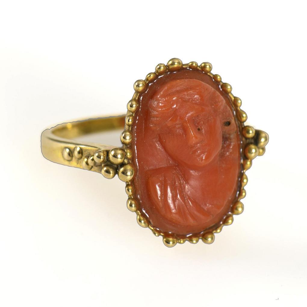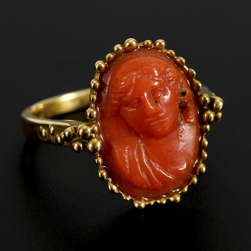 Ring with coral cameo.
