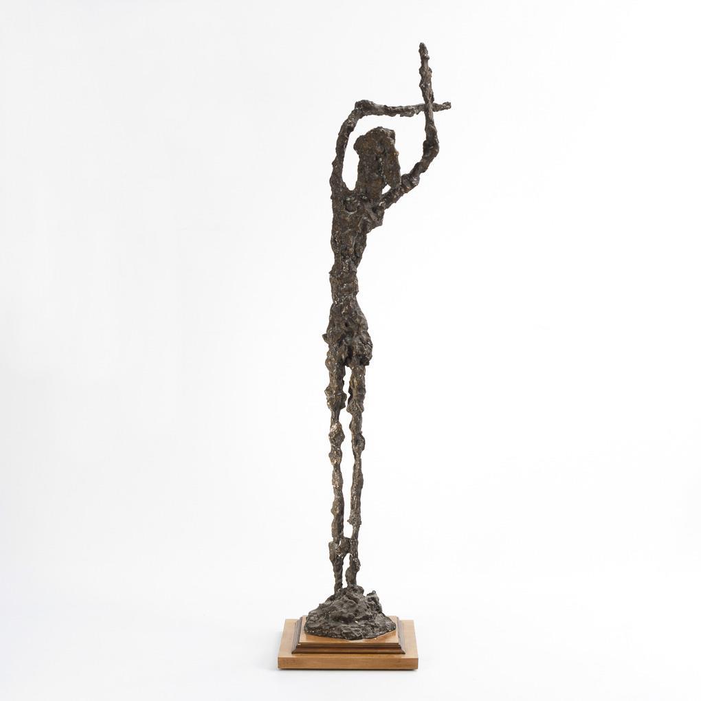 With elongated proportions and exceptionally animated surface designed dancer with raised arms.