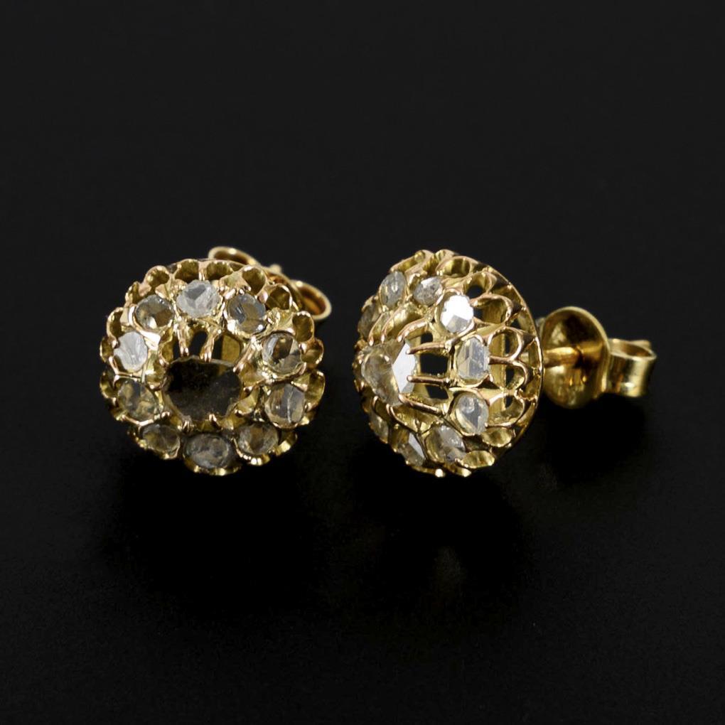 Yellow gold 585 stamped, tested. Ø 1.5 cm. 2,5 g.