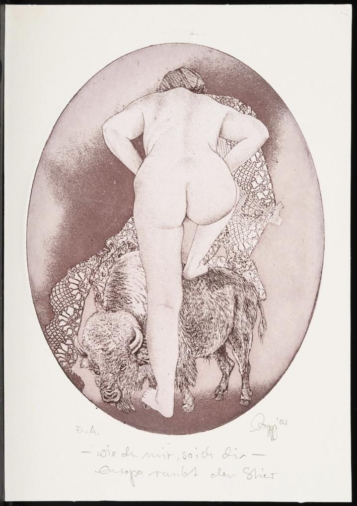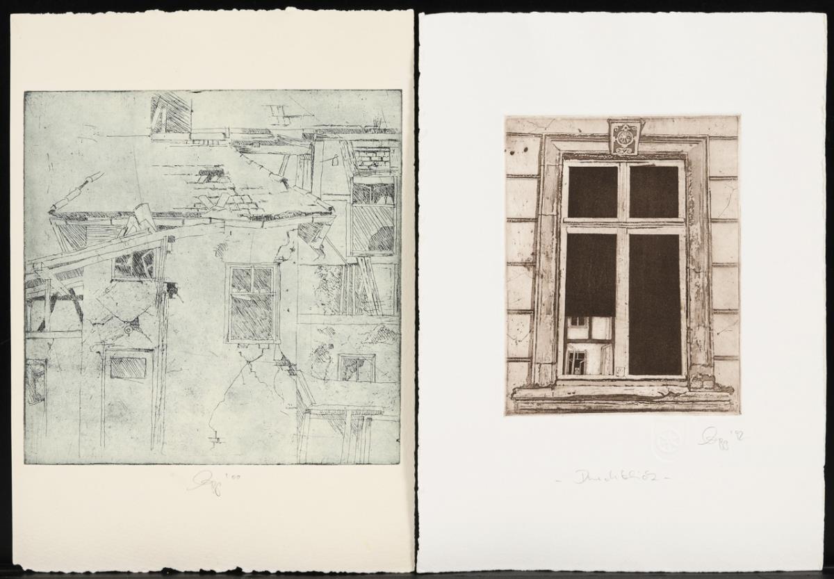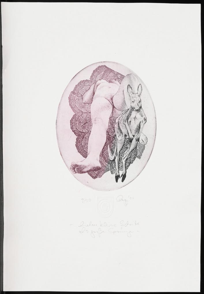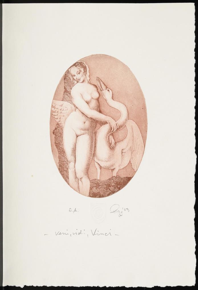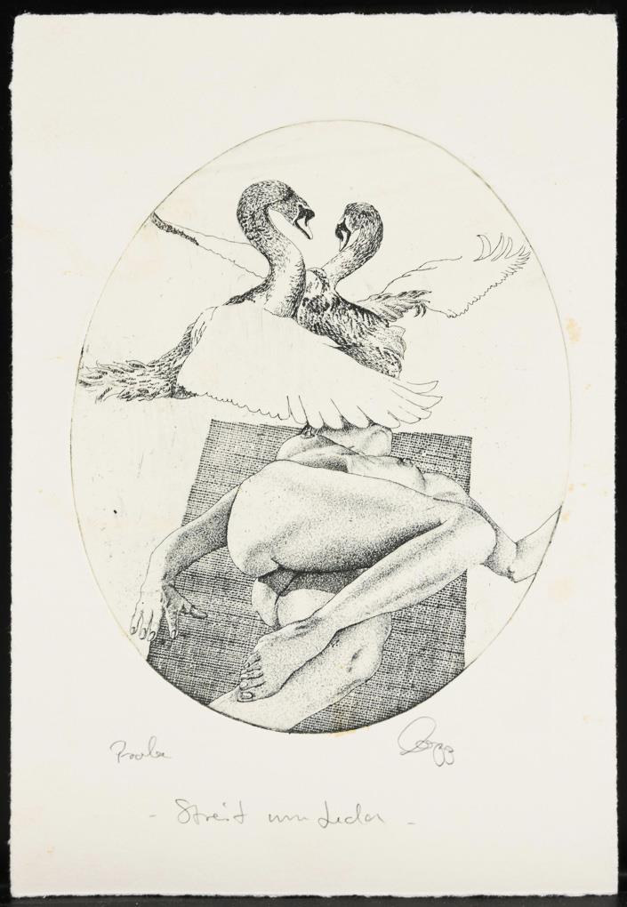 26 small-format works, including "Before the landing approach", proof, [20]03 | "Winterlich", [20]01 | "Steinreiches Land" | "Durchblick", [19]92 | "Streit um Leda", proof or "Leda vor einer neuen Eselei", proof, [19]99.