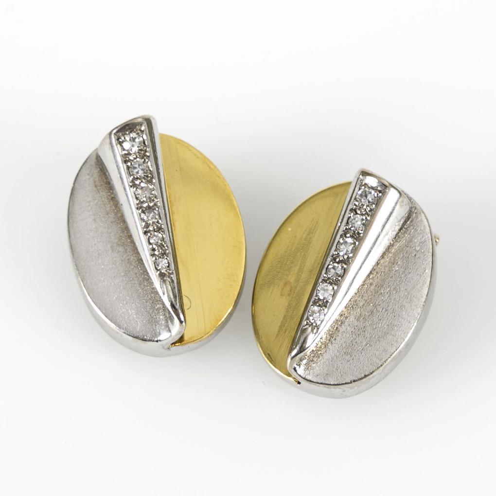 2-tone ear clip pair with diamonds.