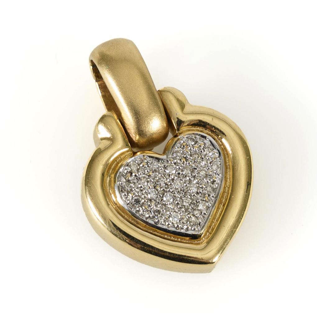 Heart pendant with 24 pavé-set diamonds, on clip eye.