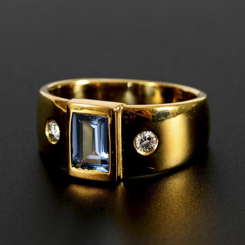 Modern ring with spinel synthesis and diamonds.
