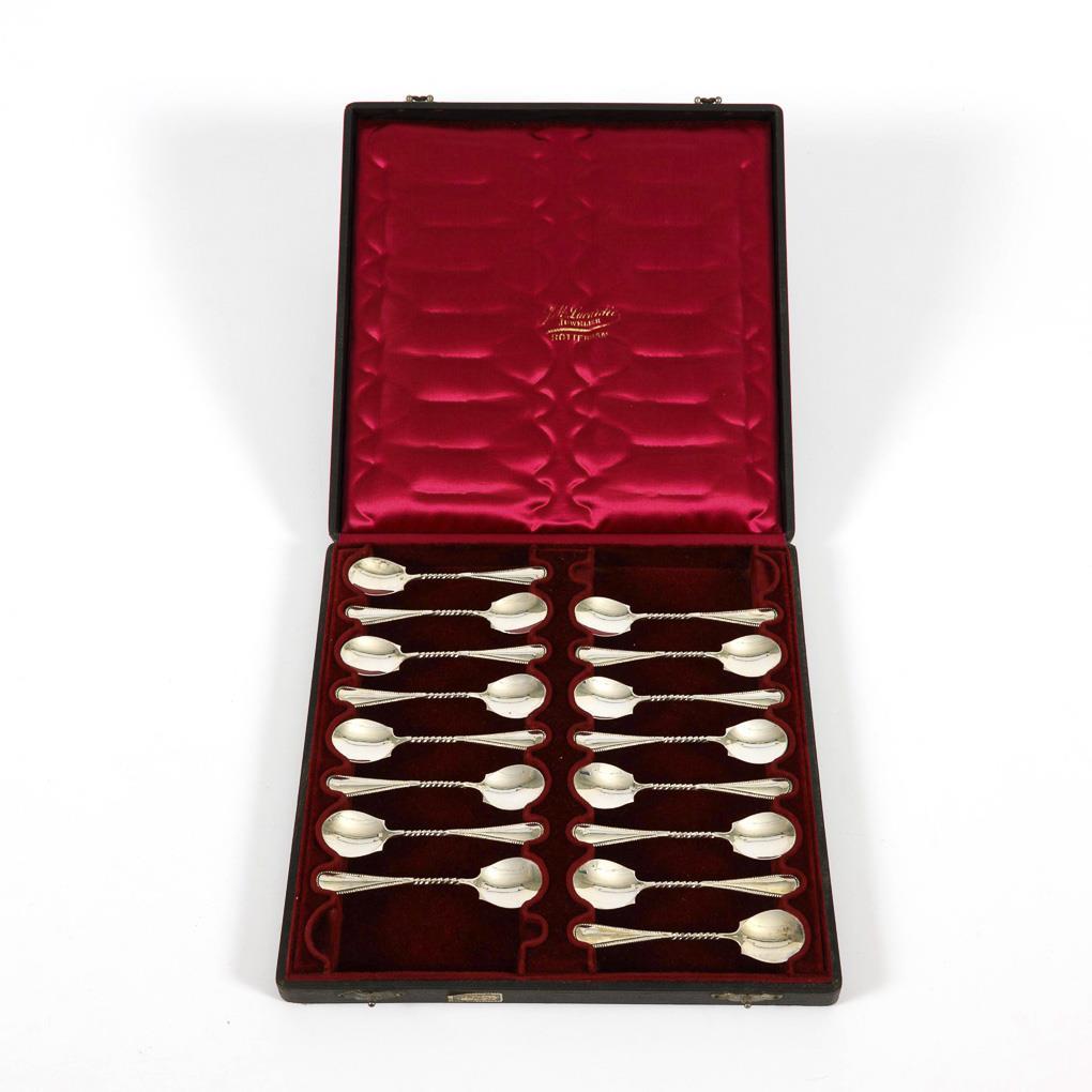 16 silver ice cream spoons in casket.